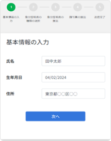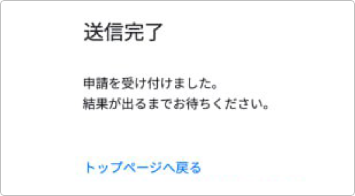 申請時に入力いただいたメールアドレスに対し、通常3営業日以内に本人確認手続き完了についてお知らせいたします。